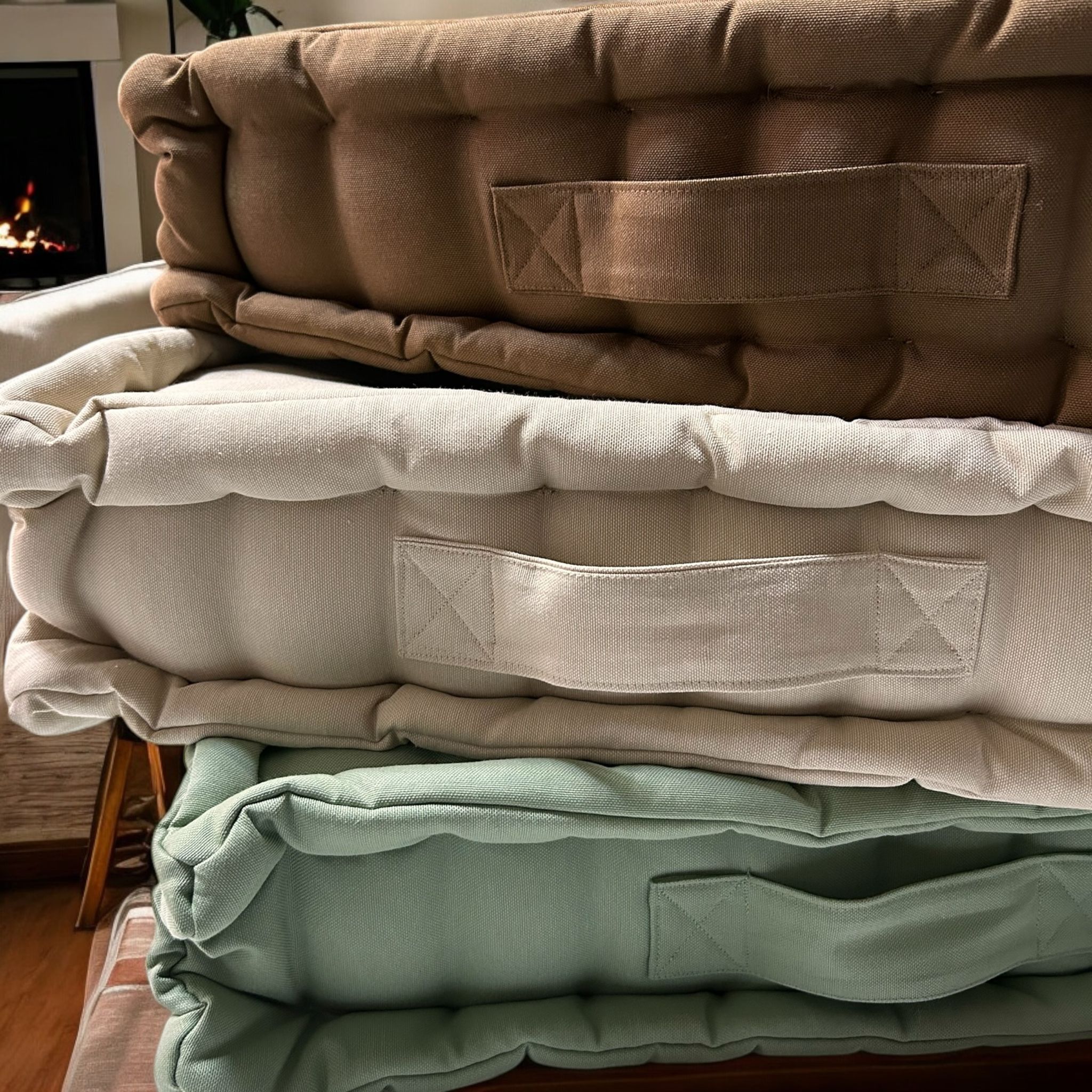 Oda, bahçe, veranda, teras ve balkon dekorasyonunda kullanabileceğiniz Bisküvi Minderlerimiz (French Mattress) tamamen el işçiliği ile üretilmiştir.